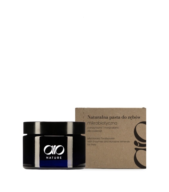 Naturalna pasta do zębów AIO Nature to nowoczesny, mikrobiotyczny preparat stworzony z myślą o kompleksowej pielęgnacji jamy ustnej psów i kotów. Dzięki połączeniu enzymów z papai i ananasa oraz naturalnego minerału ściernego, pasta skutecznie usuwa płytkę nazębną, kamień i przebarwienia, przywracając zębom naturalną biel i blask. Zawarty w niej innowacyjny składnik aktywny, pozyskiwany ze skrobi kukurydzianej, wspomaga prawidłową mikrobiotę jamy ustnej, ogranicza rozwój szkodliwych bakterii i wspiera odbudowę pożytecznych.