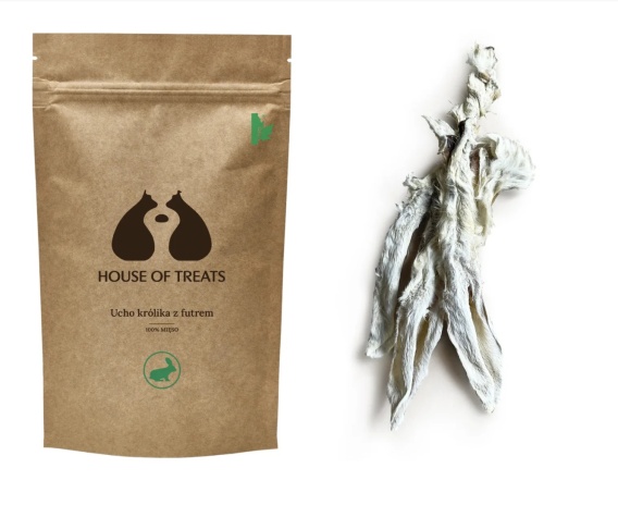 HOUSE OF TREATS Ucho Królicze z Futrem – Naturalny Gryzak dla Psów i Kotów
